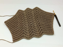 Row 19: 12 sc – dec – 4 sc– triple inc – 4 sc – triple dec – 4 sc – triple inc – 4 sc –  triple dec  – 4 sc – triple inc –4 sc – dec – 12 sc  (61)